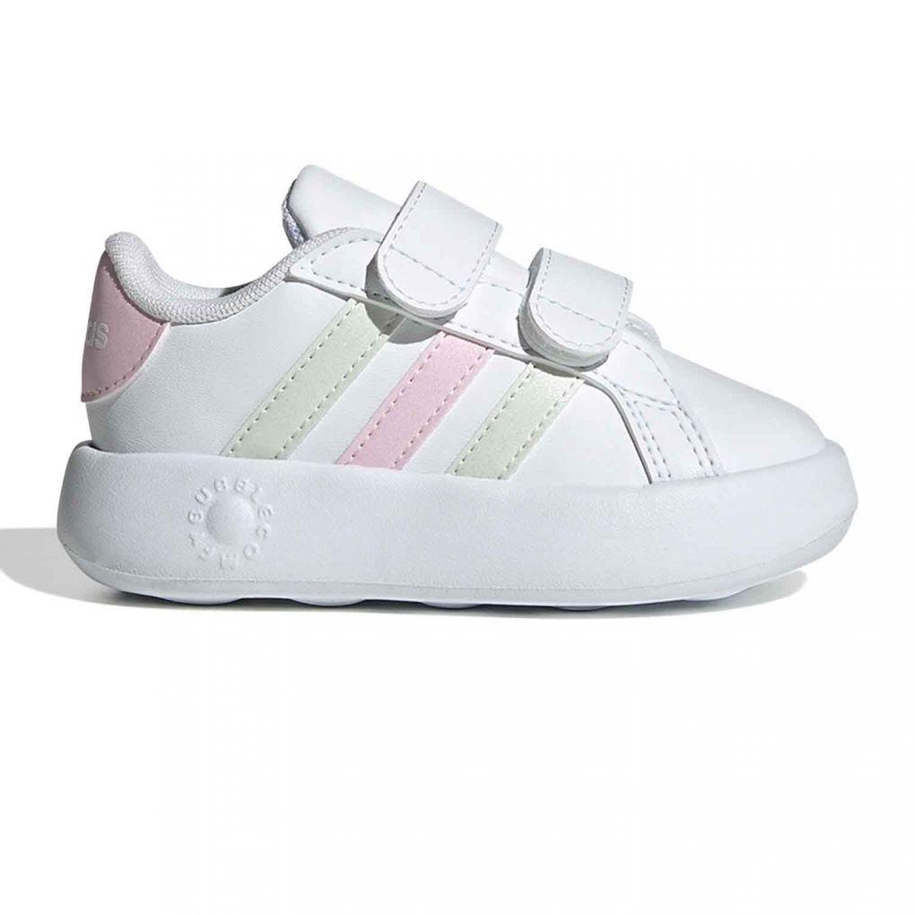 Αν το μωράκι σου μιλούσε, θα σου έλεγε πόσο πολύ λατρεύει αυτά τα adidas Grand Court παπούτσια! Τα αυτοκόλλητα λουράκια εξασφαλίζουν εύκολη εφαρμογή, ενώ η εξωτερική σόλα από EVA χαρίζει άνεση στα μικρά ποδαράκια που μεγαλώνουν. Τα παιχνιδιάρικα χρώματα και οι τρεις κλασικές ρίγες της adidas το γεμίζουν έμπνευση στα πρώτα του βήματα. Το συγκεκριμένο προϊόν περιέχει τουλάχιστον 20% ανακυκλωμένα υλικά. Χρησιμοποιούμε ανακυκλωμένα υλικά και μειώνουμε τα απορρίμματα, την εξάρτησή μας από τους μη ανανεώσιμους πόρους, και το αποτύπωμα των προϊόντων μας.