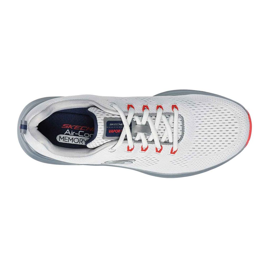 Απολαύστε απόλυτη άνεση και κομψό ελαφρύ στυλ φορώντας το Skechers Vapor Foam™. Αυτό το αθλητικό κορδόνι διαθέτει ένα κατασκευασμένο επάνω μέρος από πλέγμα και συνθετικό υλικό με μαλακή εσωτερική σόλα Skechers Air-Cooled Memory Foam®, καθώς και μια εξαιρετικά ελαφριά ενδιάμεση σόλα Vapor Foam™.